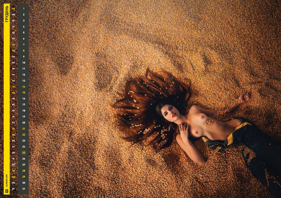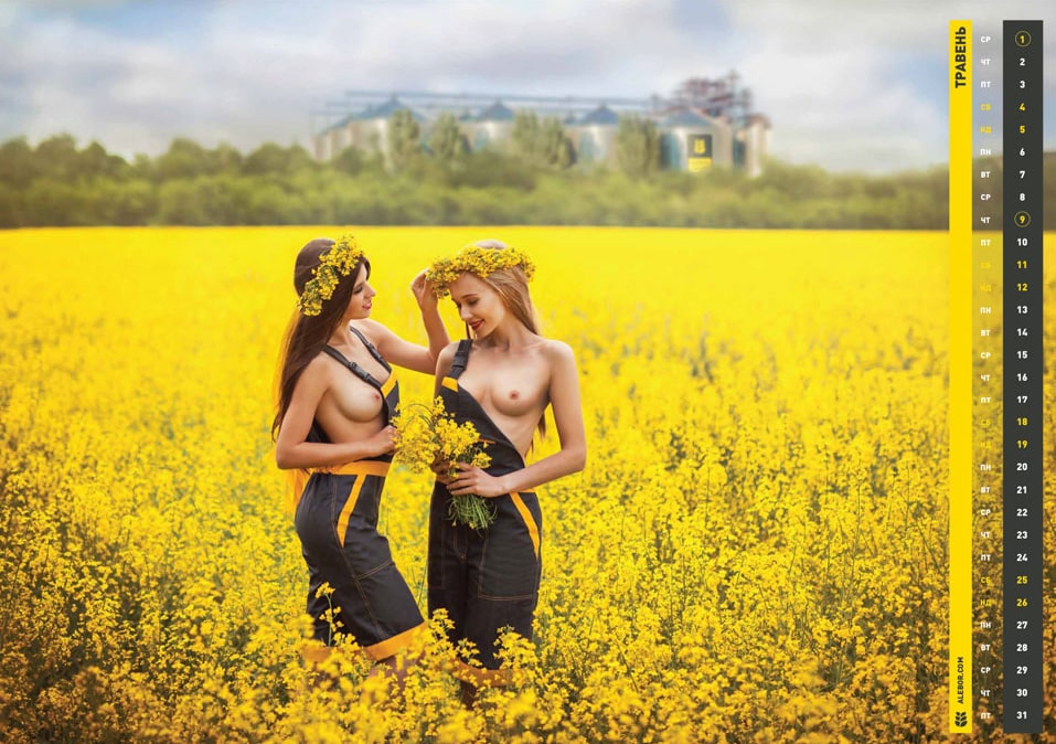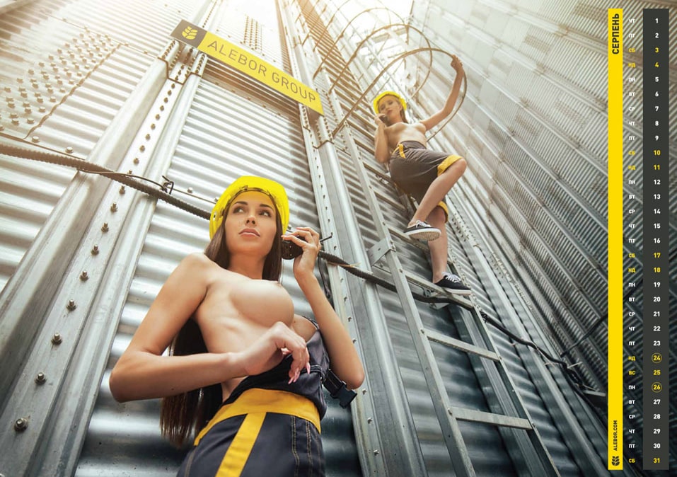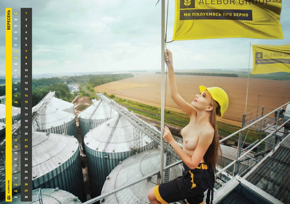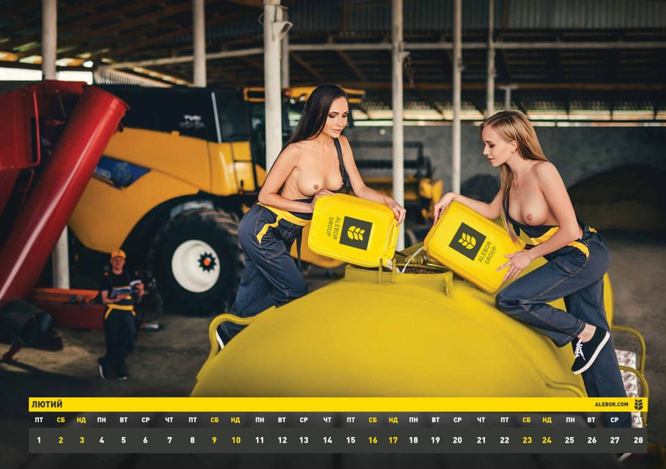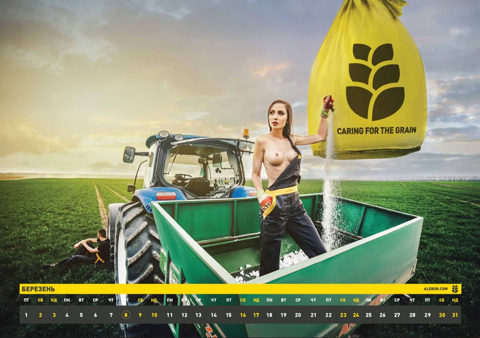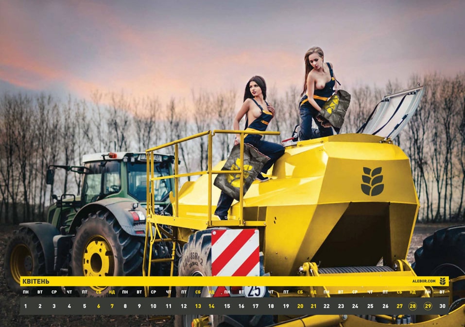 сюжет календаря — прекрасные девушки, которые в полях, на элеваторах и складах выполняют сезонные работы. Календарь позволяет не просто увидеть как выглядят некоторые рабочие процессы, но и получить приятные эмоции от знакомства с таким изысканным брендом как Алебор Груп :-)